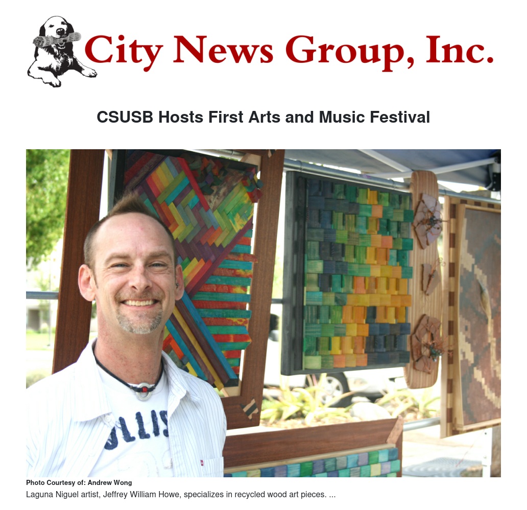 You’d never know it was the first attempt just by looking at it, though. Crowds of people of all backgrounds came to enjoy the limitless talent of the artists, who all made great efforts to share their work. One particular artist, Jeffrey William Howe, traveled from Laguna Niguel to display his sculptures and pieces made entirely from recycled wood chips and glass that he accumulates as a construction worker. He focuses on how colors and shapes become intertwined with geometry. “It’s a very primal thing,” said Howe. “I joke about it and call myself a ‘wrong-brained’ artist.”
