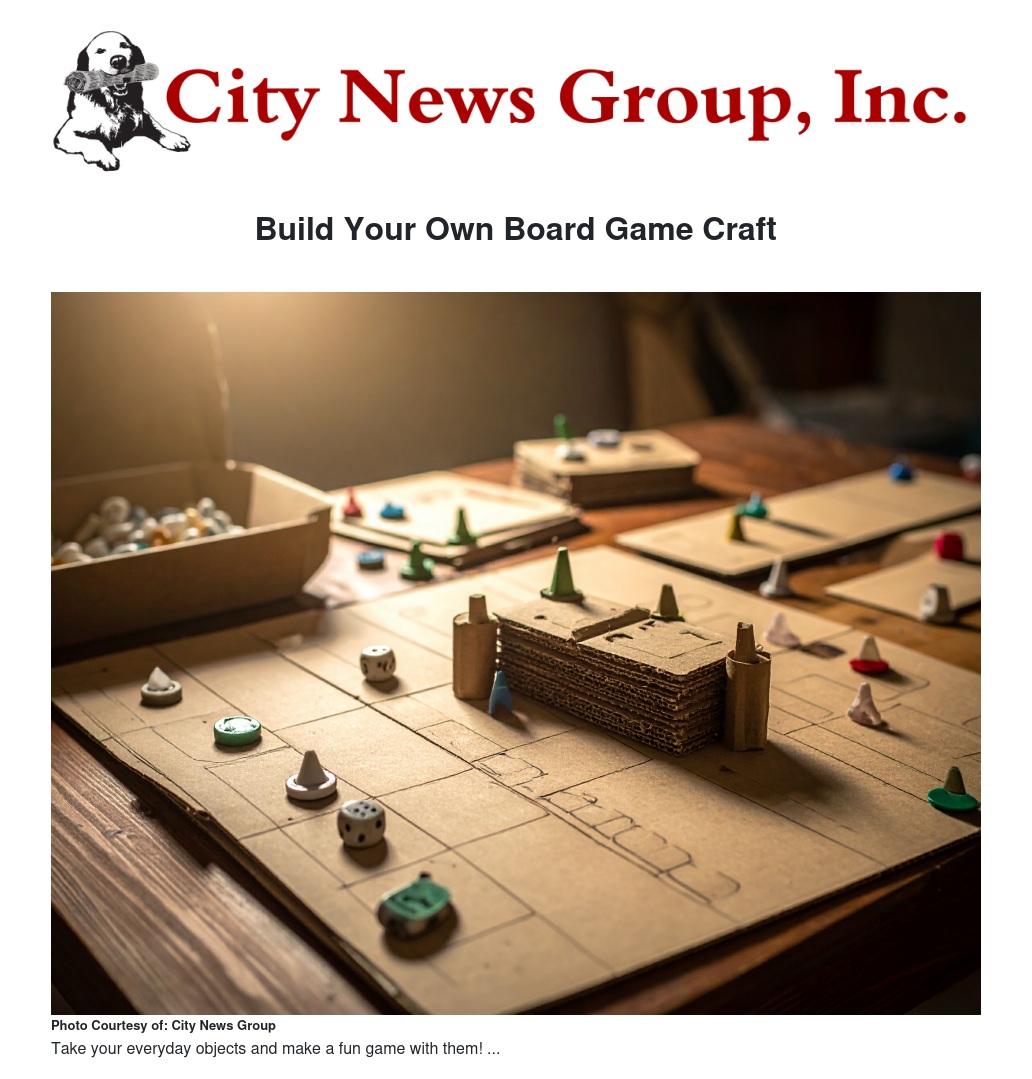 Building your own board game is an exciting and imaginative project that lets children design the rules, the story, and the game pieces. This craft supports creativity, problem solving, and collaboration. According to the American Academy of Pediatrics, play based learning encourages communication, decision making, and logical thinking. This project is safe for children ages 12 and under. Adult help may be needed for cutting and assembling pieces.