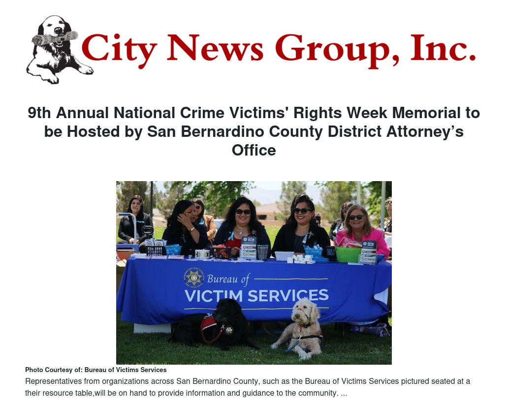 In honor of National Crime Victims' Rights Week, the San Bernardino County District Attorney’s Office is set to host the 9th Annual Crime Victims' Rights Week Memorial on April 25th, 2024, at Victor Valley College. This solemn event serves as a poignant reminder of the enduring impact of crime on individuals and communities, while also spotlighting the rights and resources available to those affected.