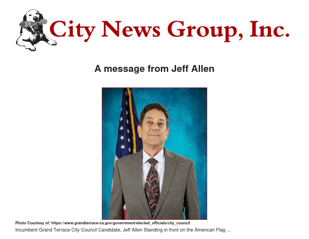 A message from Jeff Allen by Sponsored by Jeff Allen for City council - City News Group, Inc.