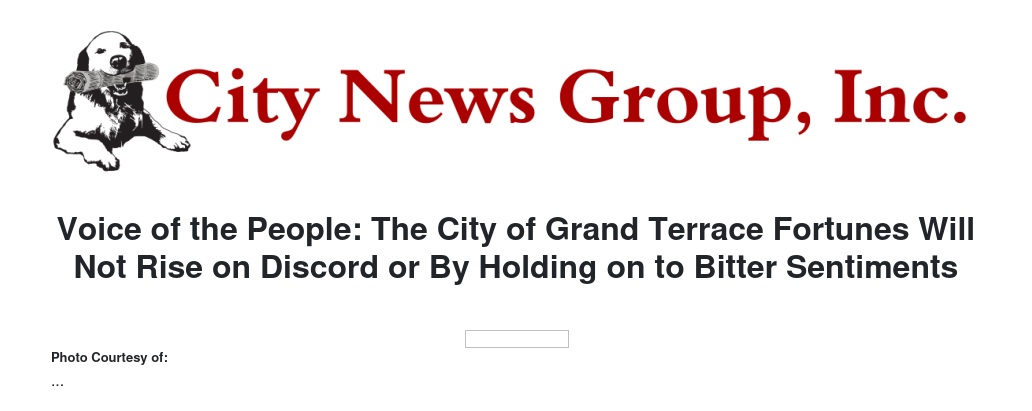 Voice of the People: The City of Grand Terrace Fortunes Will Not Rise on Discord or By Holding on to Bitter Sentiments