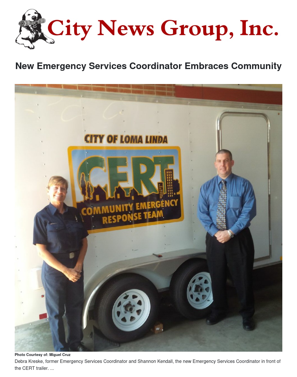 "We're really excited about what is to come," said Shannon Kendall, Loma Linda and Colton's new Emergency Service Coordinator (ESC). Kendall, who has worked in Emergency Management for 20 years, will be taking over for Debra Kreske, who has been with the Loma Linda Fire Department (LLFD) since 2010, and has now retired. Under Kreske as the ESC, she and Kendall have worked together in coordinating and instructing for the Community Emergency Response Team (CERT), an all-volunteer group that will assist emergency response teams in an event of a disaster.