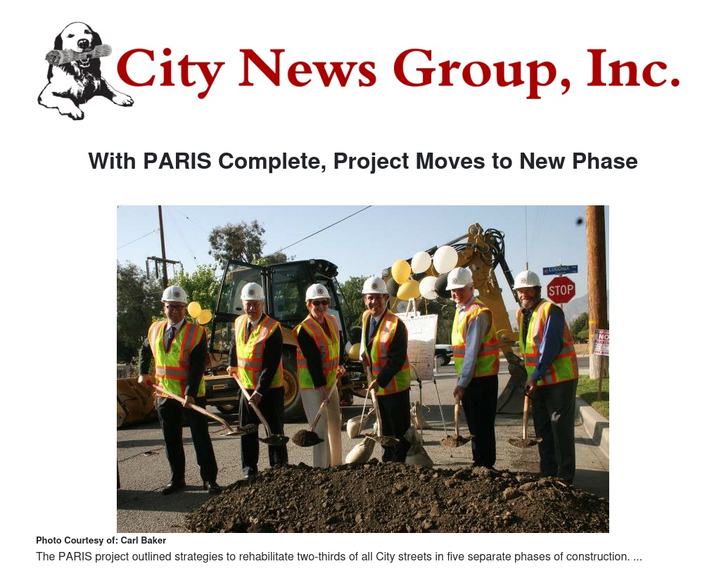 The PARIS project, approved by the Redlands City Council in September 2012, broke ground in April 2013. The project outlined strategies to rehabilitate two-thirds of all City streets in five separate phases of construction.
