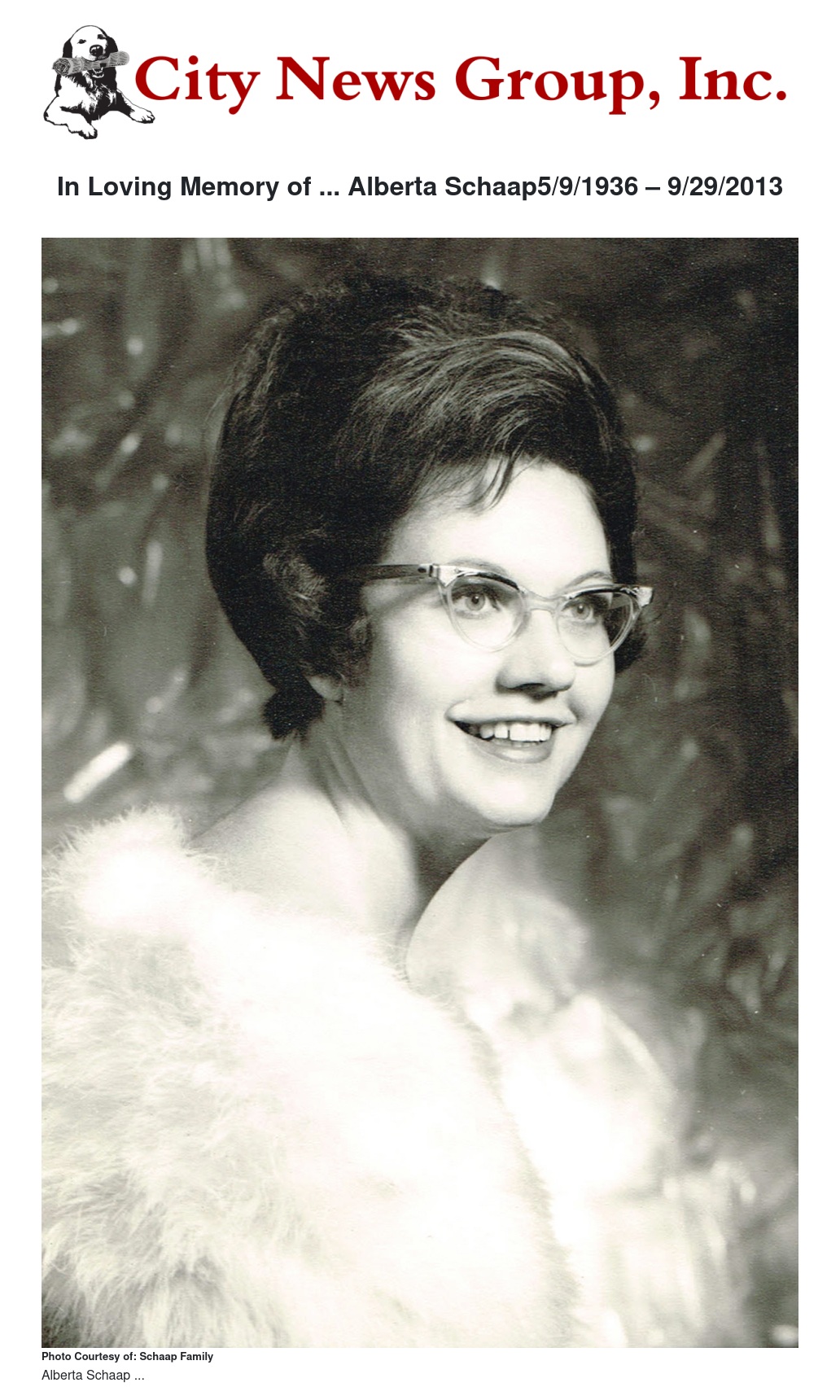 In Loving Memory of ... Alberta Schaap5/9/1936 – 9/29/2013