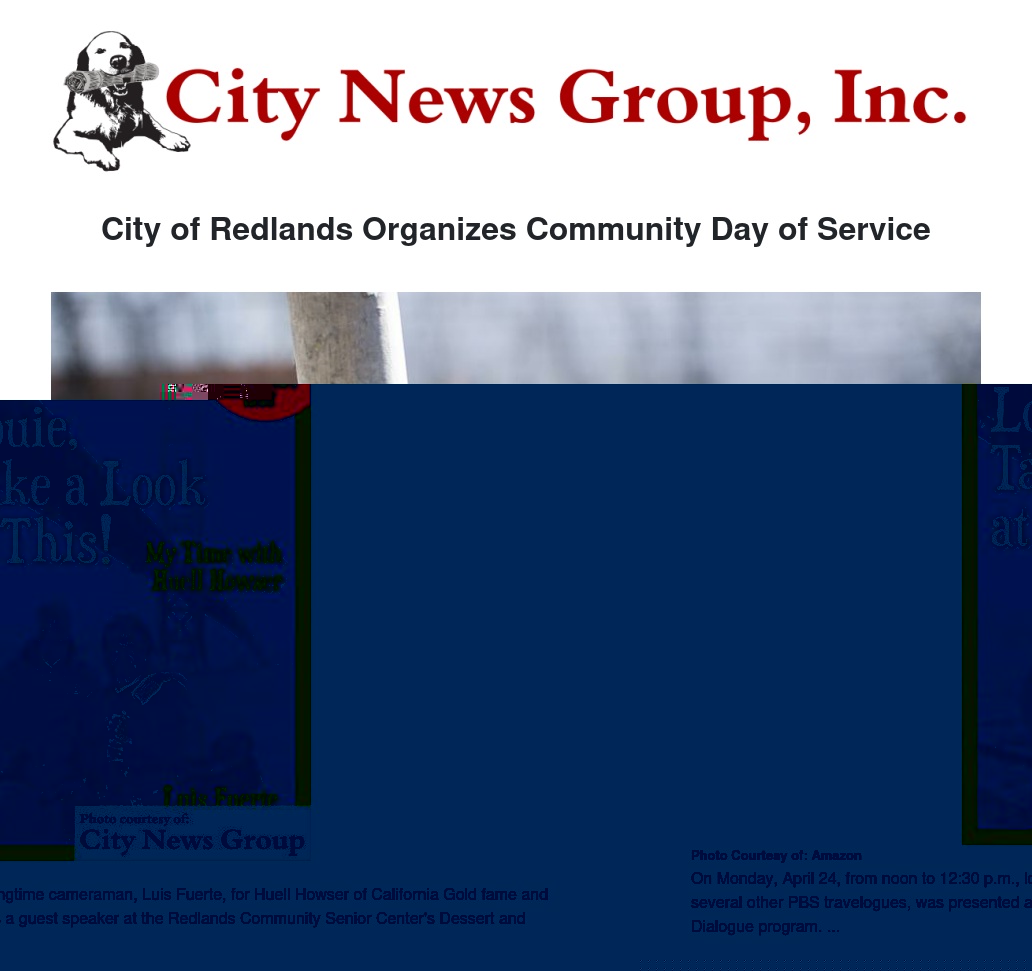 REDLANDS>> On Monday, April 24, from noon to 12:30 p.m., longtime cameraman for Huell Howser of California Gold fame and several other PBS travelogues, Luis Fuerte, was presented as a guest speaker at the Redlands Community Senior Center's Dessert and Dialogue program.