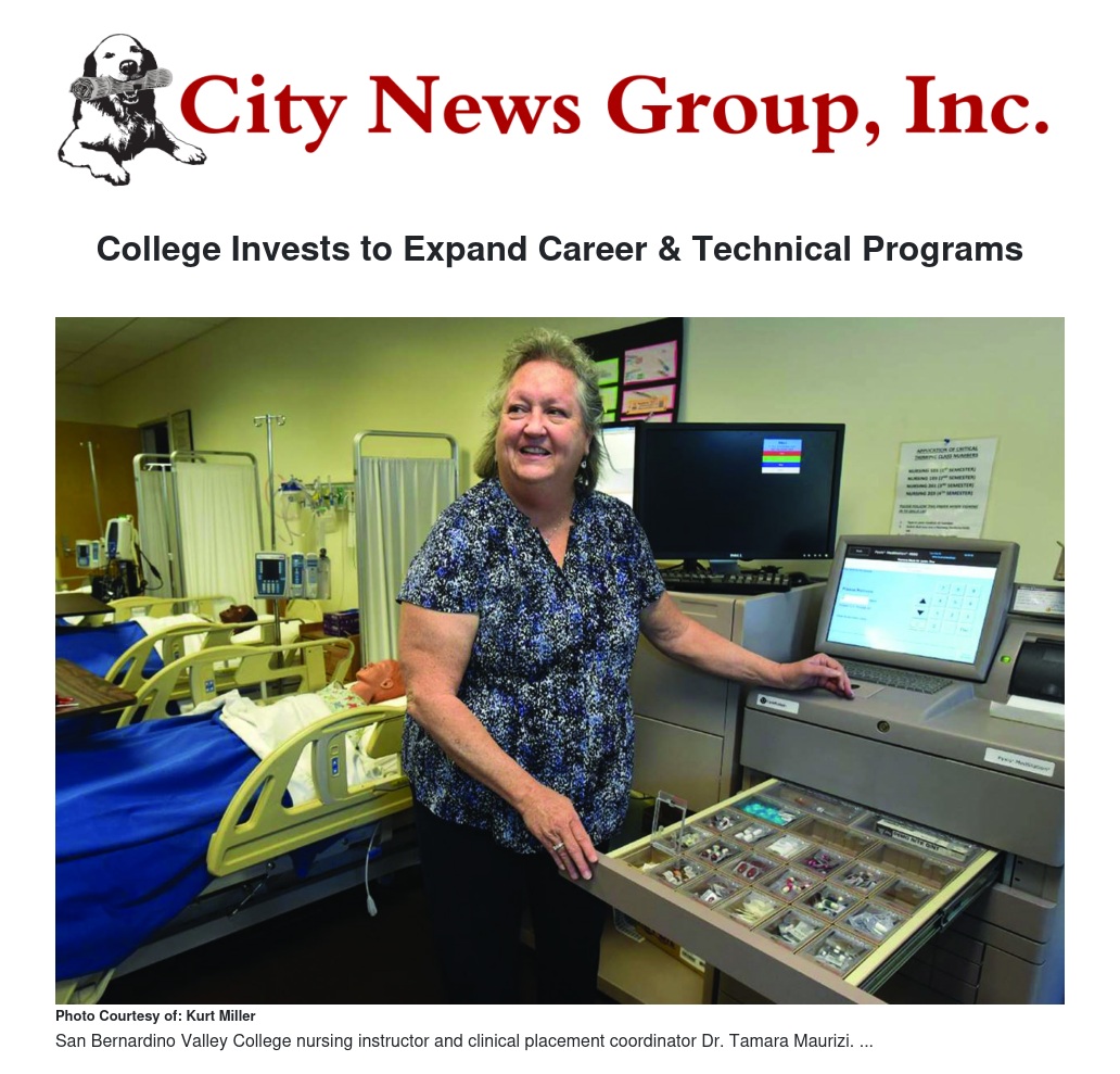 The funding has been used to upgrade equipment in several CTE programs. SBVC has been able to purchase a 3-D printer for its graphic design department and a 2017 Ford Focus hybrid electric car for automotive classes. The nursing program also benefitted from newly-acquired equipment typically found only in hospital settings. One piece of equipment, called a Pyxis MediStation, is an automated system to help nurses distribute medication accurately and efficiently. Mechanical mannequins were also purchased to provide students with a realistic way to diagnose patient symptoms in a supervised environment.