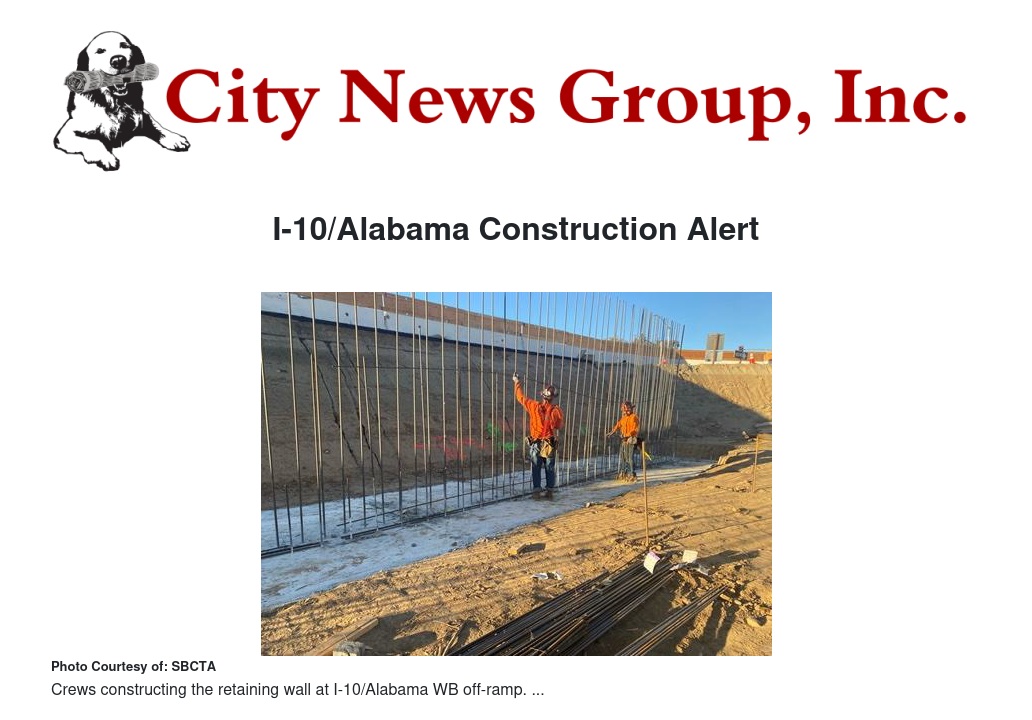 I-10/Alabama Construction Alert by San Bernardino County Transport Authority - City News Group, Inc.