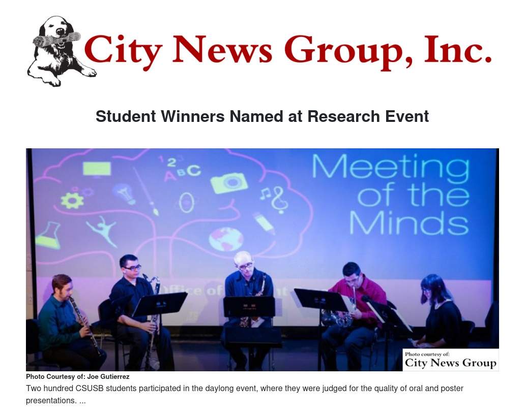 SAN BERNARDINO >> A handful of student winners from Cal State San Bernardino’s Meeting of the Minds Symposium emerged after competing in the fifth annual research competition.