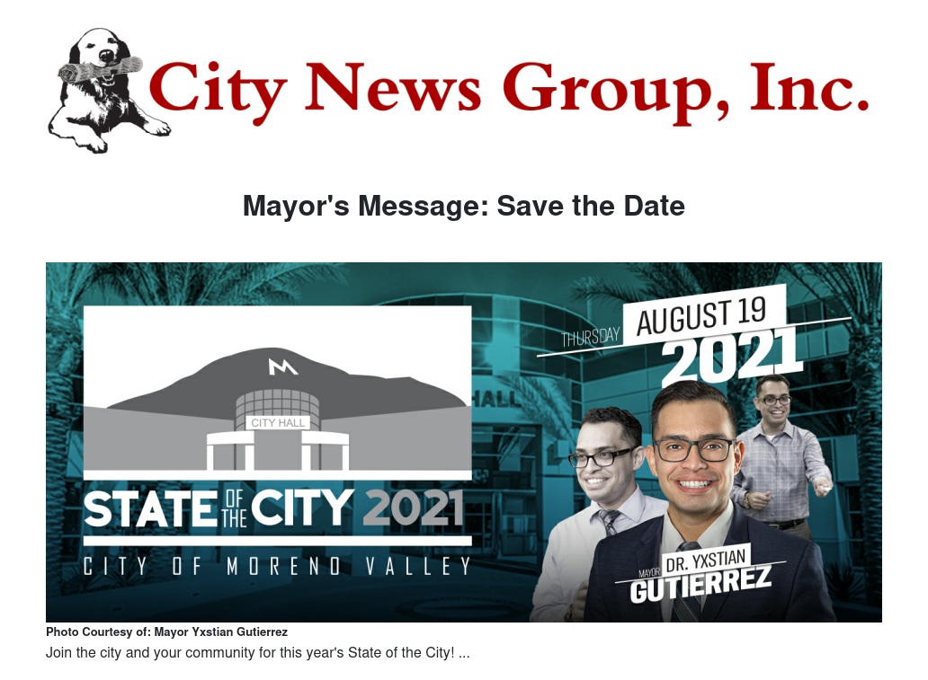 Mayor's Message: Save the Date by Mayor Yxstian Gutierrez - City News Group, Inc.