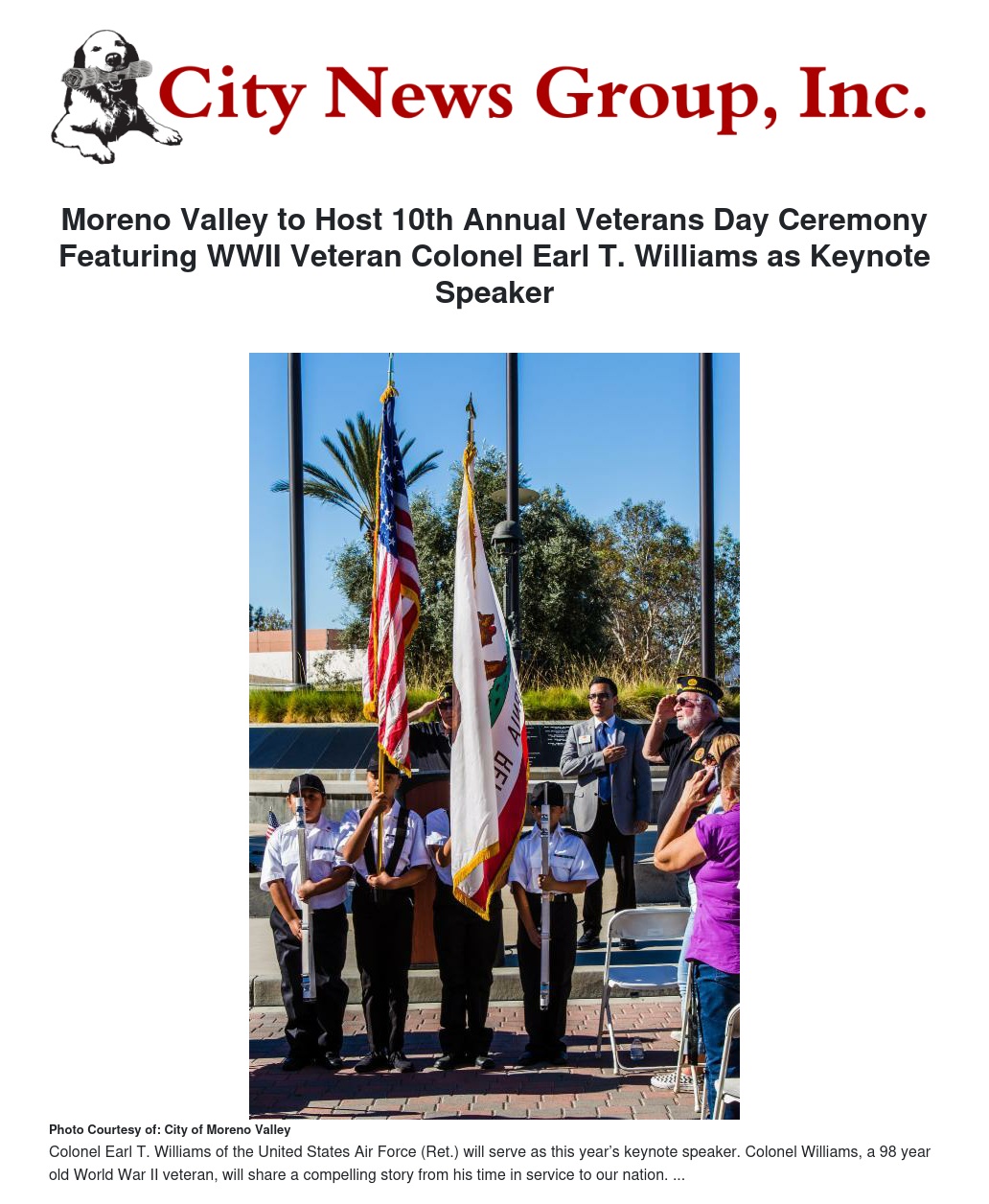 For more information about the City’s Veterans Day Ceremony, please call 951.413.3008.