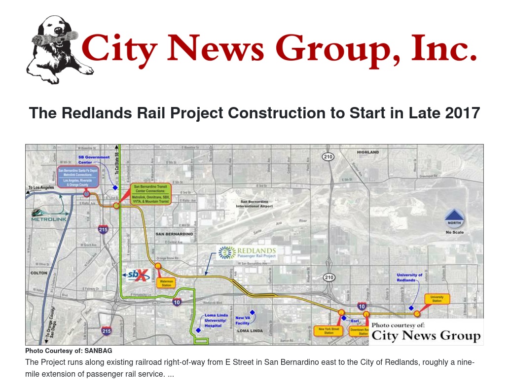 The San Bernardino Association of Governments (SANBAG) Redlands Rail Project is currently in the design phase which will last through late 2017. The Project will connect Redlands to the entire southern California Metro train network making it easier for Redlands residents to travel throughout the southland.