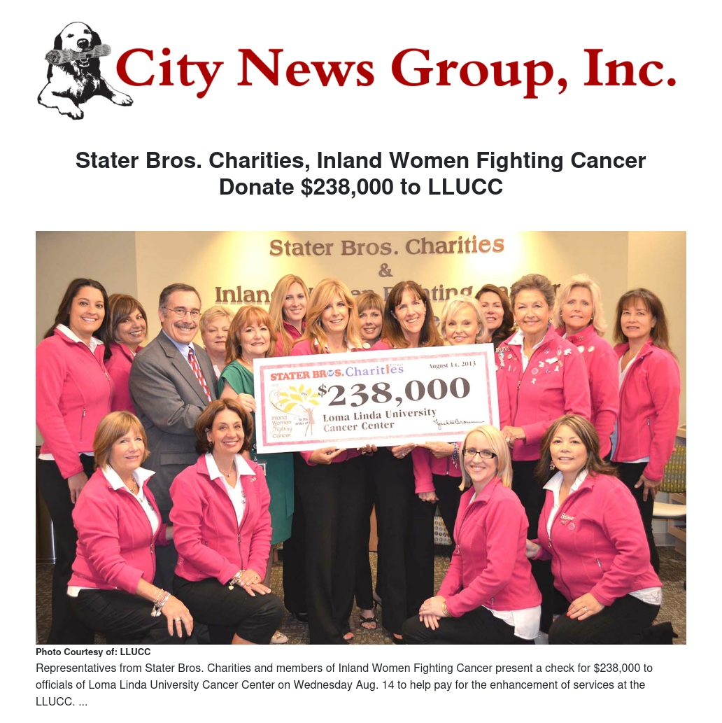 Stater Bros. Charities, Inland Women Fighting Cancer Donate $238,000 to LLUCC