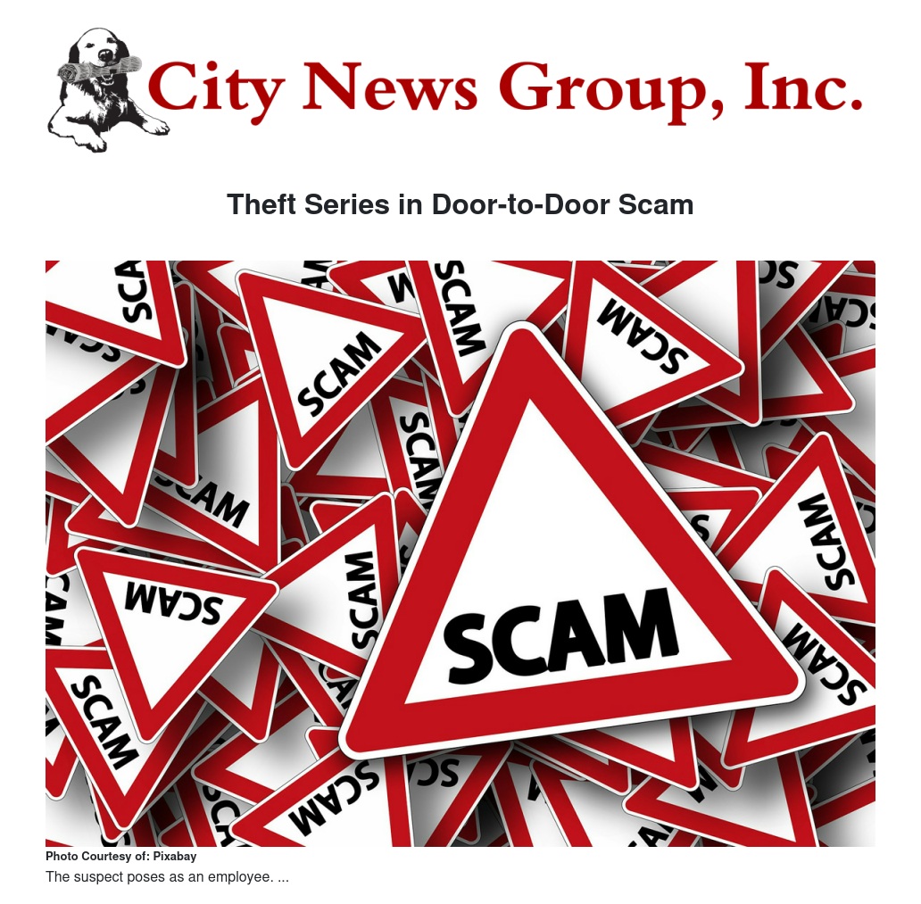 According to victims in three reported incidents, the suspect, a Hispanic female between 35 and 40 years old, knocked on their doors posing as an employee of an electric company and claiming she was there to sell or replace light bulbs.