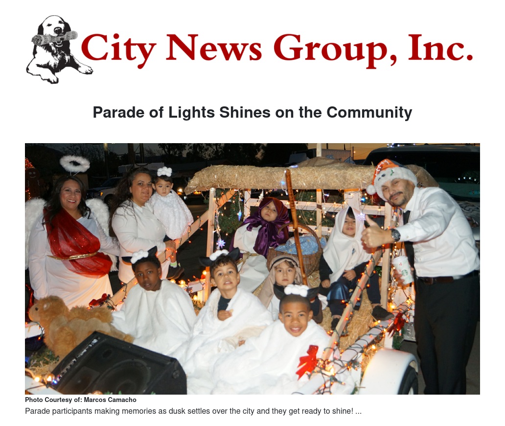 La Cadena Drive is normally a fast moving thoroughfare through the city. It’s the main vein through the hustling bustling historic town of Colton. It branches off to nearly every essential street you can imagine, and is usually a pretty smooth cruise through the city. Saturday Dec 8th, that was not the case. All traffic was halted and the stage was set for families to gather along the route for the Colton Chamber of Commerce 44th Annual Christmas Parade & Tree Lighting at Civic Center. 2018 marked the first year that the Colton Christmas parade was held at night. The residents, city officials, and parade enthusiasts began to gather at 3 pm to take their places in line. The floats, classic cars, marching bands, and spirit teams centered around La Cadena and O Street in South Colton making last minute preparations. Costumes were being pinned together, live animals were being kept fed and happy, children were laughing and playing, photos were being taken and memories were being made. As thousands of residents and those having ties to the city lined the sidewalk creating a human border of cheerfulness and anticipation, the air was crisp and fresh. Dusk settled over the city and the lights began to glow. Over 40 entries participated in the parade. Featured were: CHS Band, CHS Cheer, GT Spirit Squad, Echoes of Love Ministry, Church Of Fire In Christ, Colton Cub Scout Pack 42, Colton Christian Church, nv361 Salon, Teamsters, Stare Bros, and many, many more. Colton’s Mayor Richard Dela Rosa served as Parade Grand Marshall and rode on his own festively decorated float. The parade route commenced from La Cadena and O Street as music filled the atmosphere, the crowd was excited, children were waving with smiles and everyone was wishing each other a very merry Christmas. The night was topped off with the parade ending near the Colton Civic Center. There, vendors were selling yummy treats like kettle corn, hot chocolate, specialty corn on the cob, and bacon wrapped hot dogs. There was no shortage of food, fun, or festival-goers! The city also featured the movie Anastasia on a jumbo screen set up for those willing to brave the chilly night air. The theme of this year’s parade was Christmas Lights Down Gingerbread Lane and the floats were judged according to the theme. Winning First Place was nv361 Salon, Second Place winner was The Door Christian Fellowship, and rounding out Third Place was Grand Terrace High School Spirit Squad. A good time was had by all and kudos to those who make it all happen behind the scenes, a great job by the Colton Chamber of Commerce and its new director and board for organizing the event.