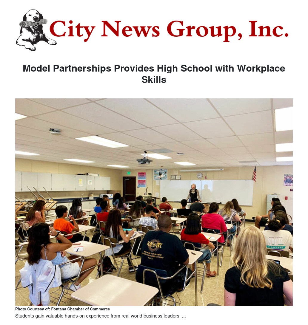 Several dozen high school students are learning real-world employability skills at Etiwanda High School as part of a model partnership between the Chaffey Joint Union High School District and the Fontana Chamber of Commerce.
