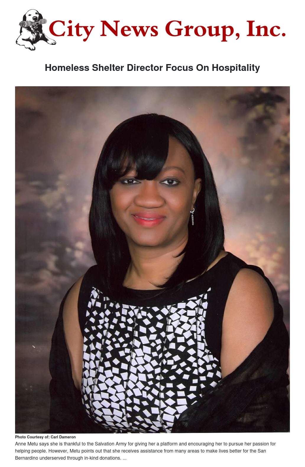 As the director, Metu oversees The Salvation Army and its community partners’ efforts to provide vital services for the Inland Empire’s homeless children and families. In 2014, the shelter at 925 W. Tenth Street, San Bernardino, provides three programs to those in need.