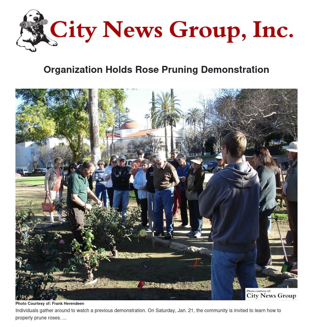 The Redlands Horticultural and Improvement Society will be holding its yearly hands-on demonstration on how to properly prune roses on Saturday, Jan. 21, 2017 at Sylvan Park in Redlands.
