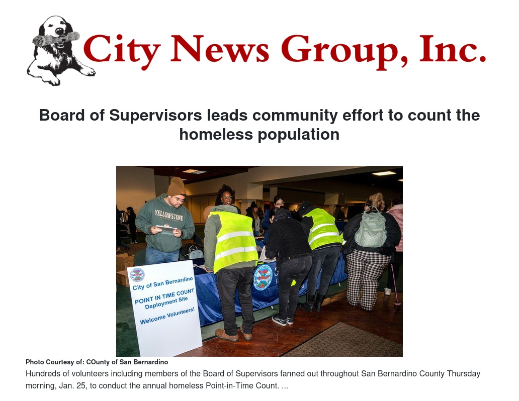 Board of Supervisors leads community effort to count the homeless population by San Bernardino County - City News Group, Inc.