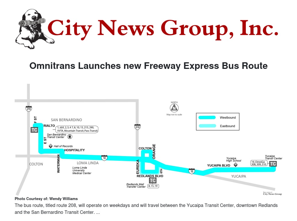 “Route 208 will cut travel time in half compared to taking local bus routes,” said Omnitrans spokesperson, Wendy Williams. “Express buses also have free Wi-Fi on board to help make commuting time more productive.”
