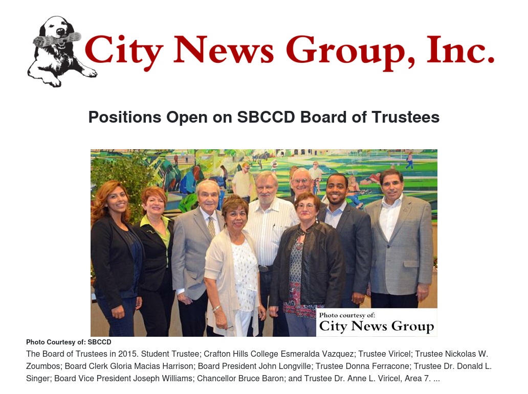 ALL >> The San Bernardino Community College District seven-member board have four positions to be filled in the November 2016 election.