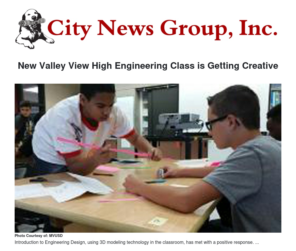 Lowry, in his second year at VVHS, attended a two-week training conference at Iowa State University over the summer to learn the fundamentals of teaching AutoDesk three-dimensional modeling software. In VVHS’s Introduction to Engineering Design class, students work on projects like designing both simple and complex shapes on the computer and then learning the commands to make them revolve and flip, key elements in the design process.