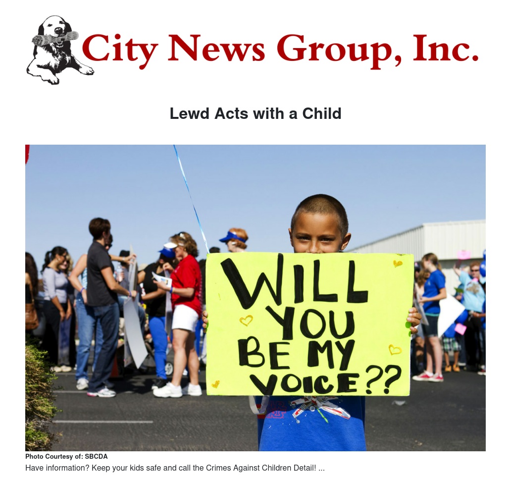 On Saturday, March 8, 2014 deputies from the Central Sheriff’s Station responded to a report of a child molestation occurring in the cities of San Bernardino, Rancho Cucamonga, and Fontana.