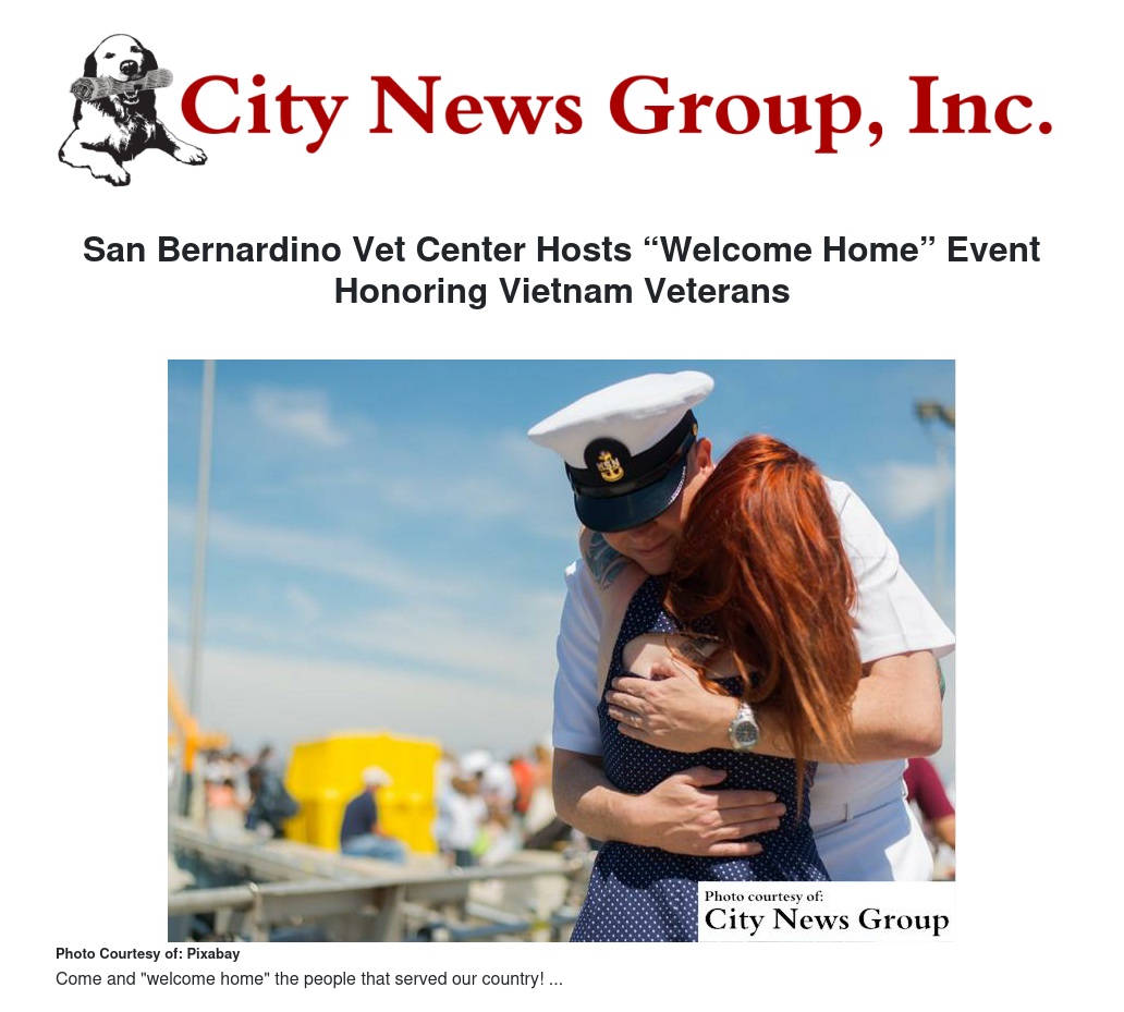 The San Bernardino Vet Center, VA Loma Linda Healthcare System and San Bernardino County Veteran Affairs will host a “Welcome Home” event geared toward honoring Vietnam veterans for their service and sacrifice. The event will be taking place on Tuesday, March 29, from 10 a.m. to 2 p.m. at Front Sight, 1009 Brooks Street (Unit C) in Ontario.