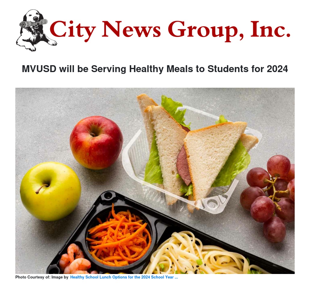 Moreno Valley Unified School District in Riverside California announces that it will be serving healthy meals to students under the National School Lunch and School Breakfast Programs for the 2023 - 2024 school year.