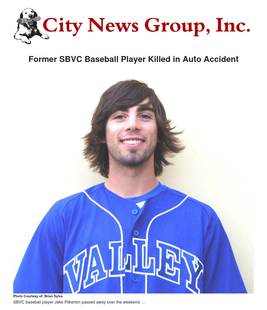 Former San Bernardino Valley College (SBVC) baseball second baseman Jake Pilkerton (Lake Arrowhead, Rim of the World) was killed on Saturday morning, Aug. 3, in a collision on Highway 18.