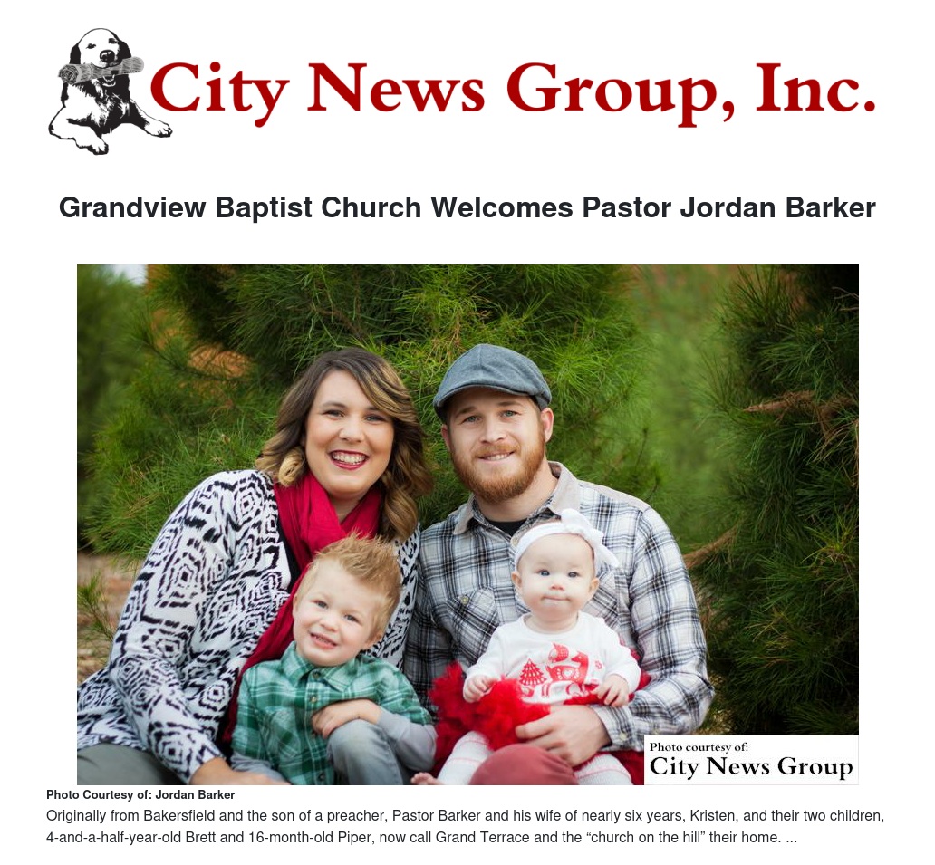 Originally from Bakersfield and the son of a preacher, Pastor Barker and his wife of nearly six years, Kristen, and their two children, 4-and-a-half-year-old Brett and 16-month-old Piper, now call Grand Terrace and the “church on the hill” their home.