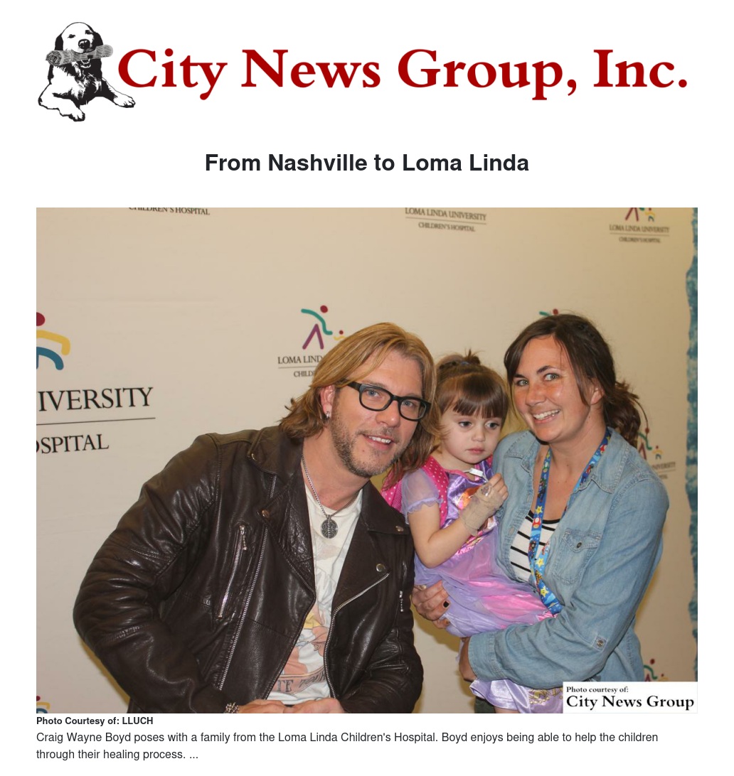 On Monday, Jan. 26, Craig Wayne Boyd visited the Loma Linda University Children's Hospital to perform a few songs for all of the visitors of the hospital, courtesy of K-FROG 95.1.