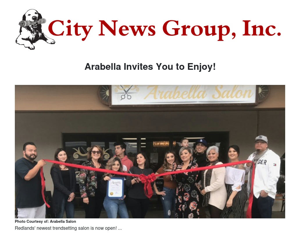 Arabella Salon is proud to announce that Redlands residents have a new style hot spot to choose from and make their own. The salon offers cuts, styles, highlights, Brazilian blow-outs, updo's, extensions, and styling for any and all special occasions. More than just hair services they also offer facials, waxing, special occasion make-up and beautiful eyelash extensions. Arabella Salon is open for business and is gladly accepting walk-in's or appointments. The salon welcomes men, women, and children of all ages.
