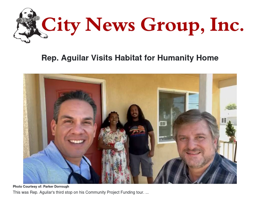 Rep. Aguilar Visits Habitat for Humanity Home by Parker Dorrough - City News Group, Inc.