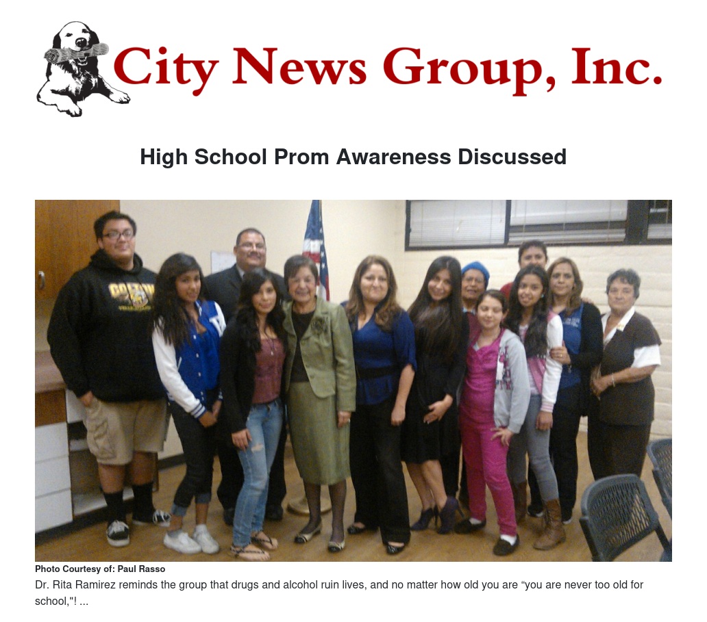 The coalition also had a guest speaker Dr. Rita Ramirez, a candidate for County Superintendent of Schools who reminded the group that drugs and alcohol ruin lives, and no matter how old you are “you are never too old for school, indicating that she had a student who completed her Bachelor's degree at 85 years of age. Dr. Ramirez holds 6 credentials and has been teaching for 38 years.
