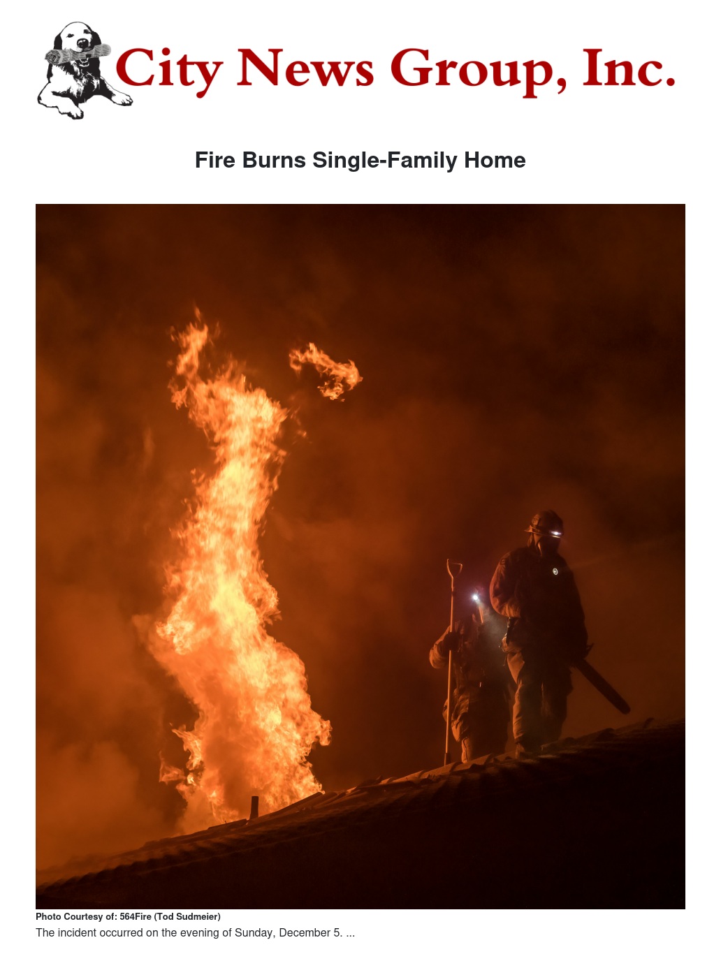Fire Burns Single-Family Home by Carl Baker - City News Group, Inc.