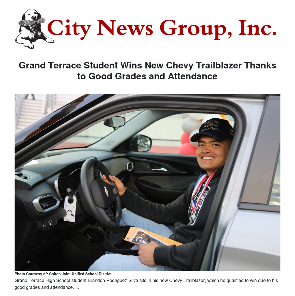 Grand Terrace Student Wins New Chevy Trailblazer Thanks to Good Grades and Attendance by Luke Page - City News Group, Inc.