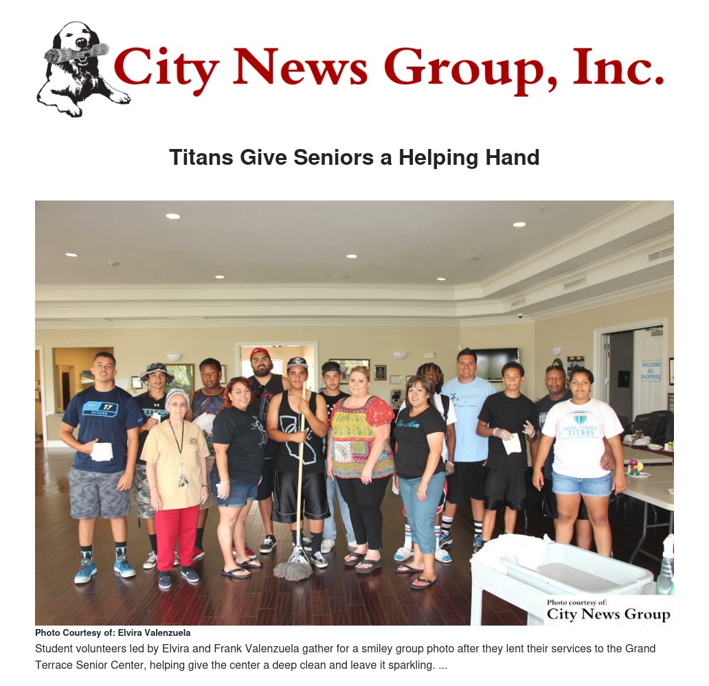 The Grand Terrace Senior Center gives a big thank you to Elvira and Frank Valenzuela, who called to see if the Grand Terrace Senior Center needed volunteers and came to work alongside the students.