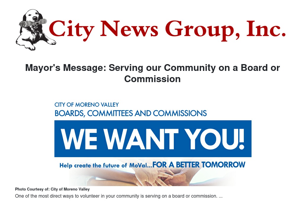Serving on a commission or advisory board isn’t just for folks who are retired. All you need to qualify is to be a registered voter over 18 years old, a resident of Moreno Valley, and have a passion for serving others and doing good.