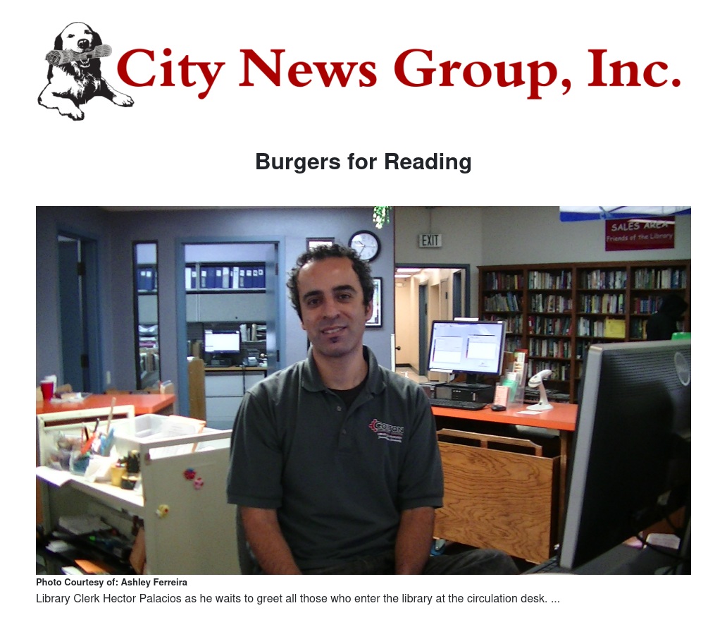 "There isn't a goal in terms of how many kids we get, but the greater number we get the better," said Library Clerk Hector Palacios. The program hopes to draw a large number of children with their parents to the library so that everyone can pick up a book and read, but most importantly, so that kids can satisfy their appetite for books and hamburgers!