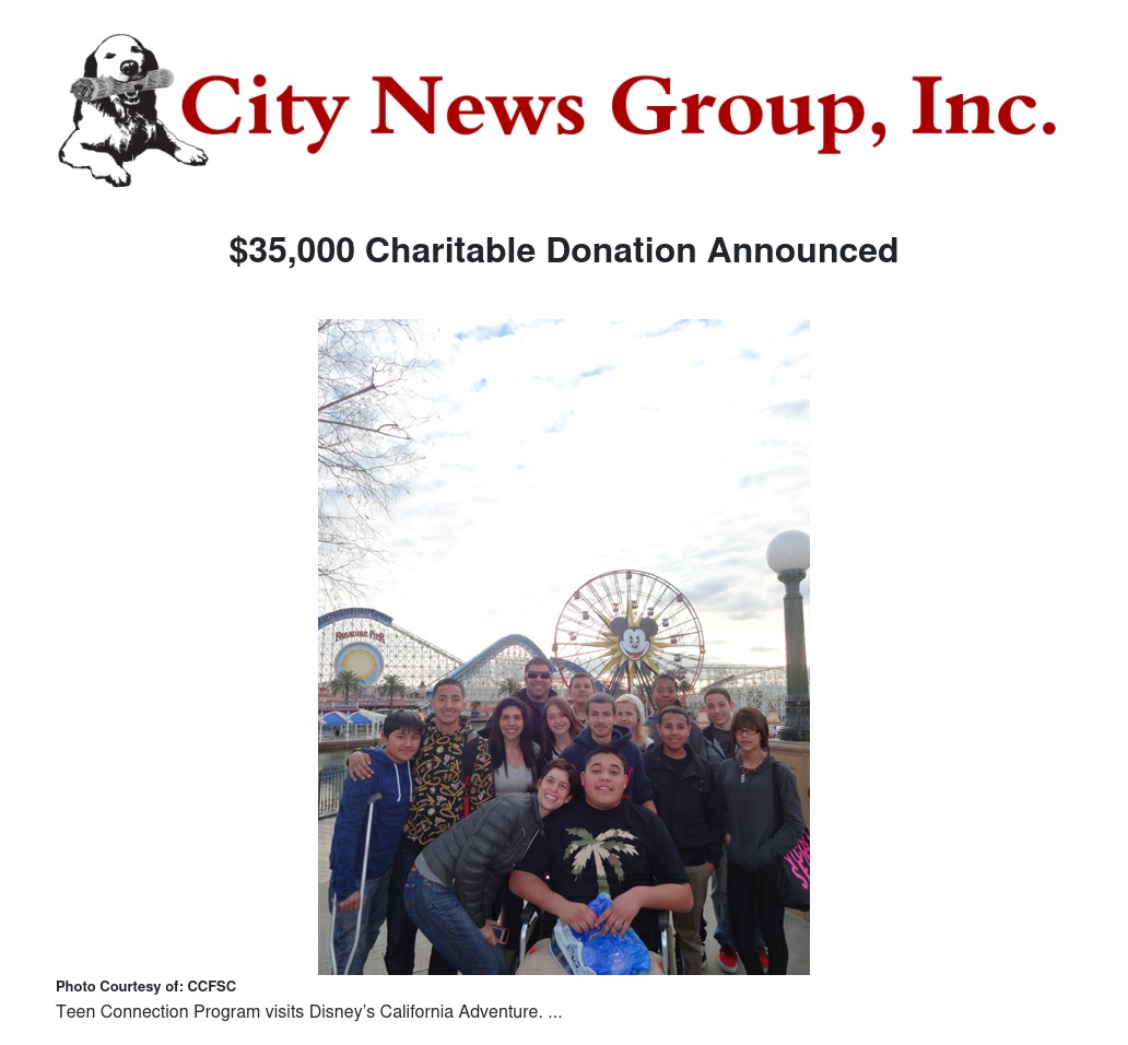 Childhood Cancer Foundation is accepting donations to continue to enhance the programs provided to families who have a child diagnosed with cancer. For more information on CCFSC or how you can support its community efforts, please visit www.ccfsocal.org.
