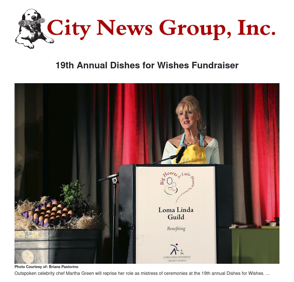 Dishes for Wishes, an annual cooking demonstration hosted by the Big Hearts for Little Hearts Loma Linda Guild, will take place Wednesday, Oct. 17, from 5 to 9 p.m. in the Renaissance Ballroom of the National Orange Show Events Center, 689 S. E Street in San Bernardino.