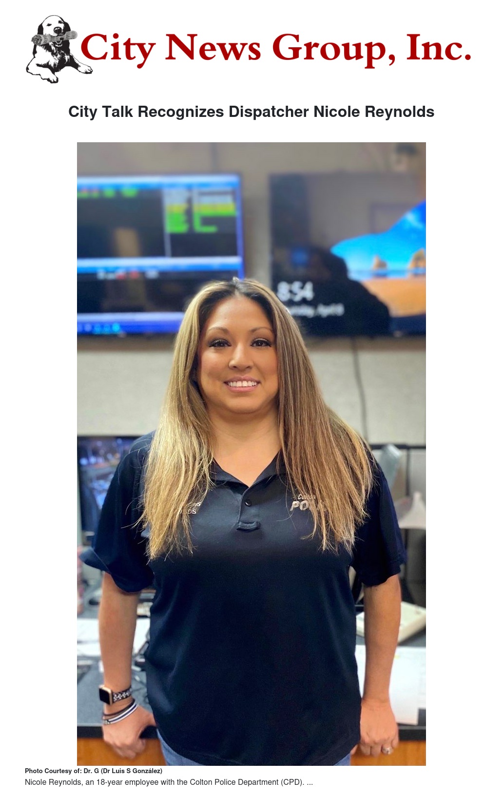 City Talk Recognizes Dispatcher Nicole Reynolds by Dr. G (Dr Luis S González) - City News Group, Inc.