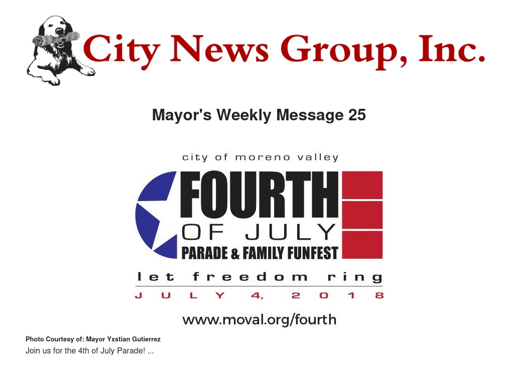 Mayor's Weekly Message 25 by Mayor Yxstian Gutierrez - City News Group, Inc.