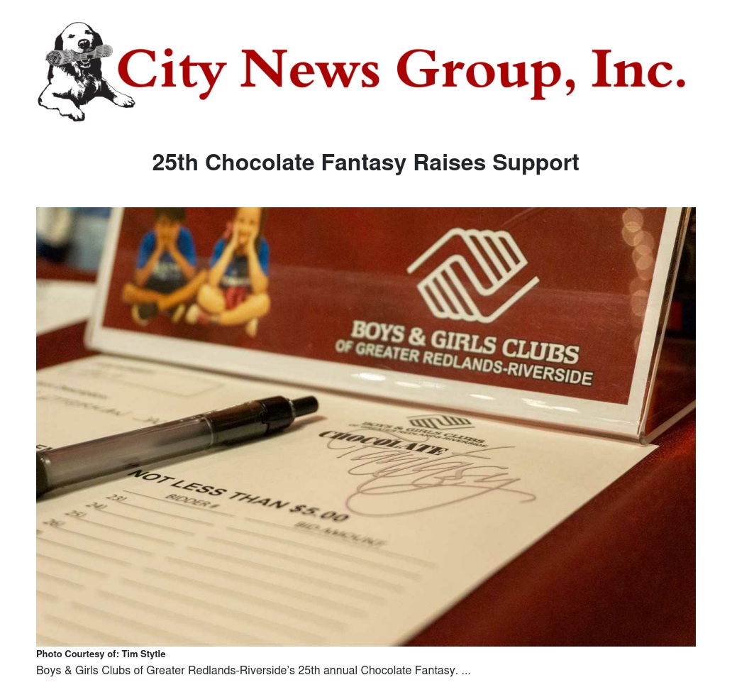 Boys & Girls Clubs of Greater Redlands-Riverside’s 25th Chocolate Fantasy raised more than $150,000 for Club programs on Feb. 9 – a record for the event.