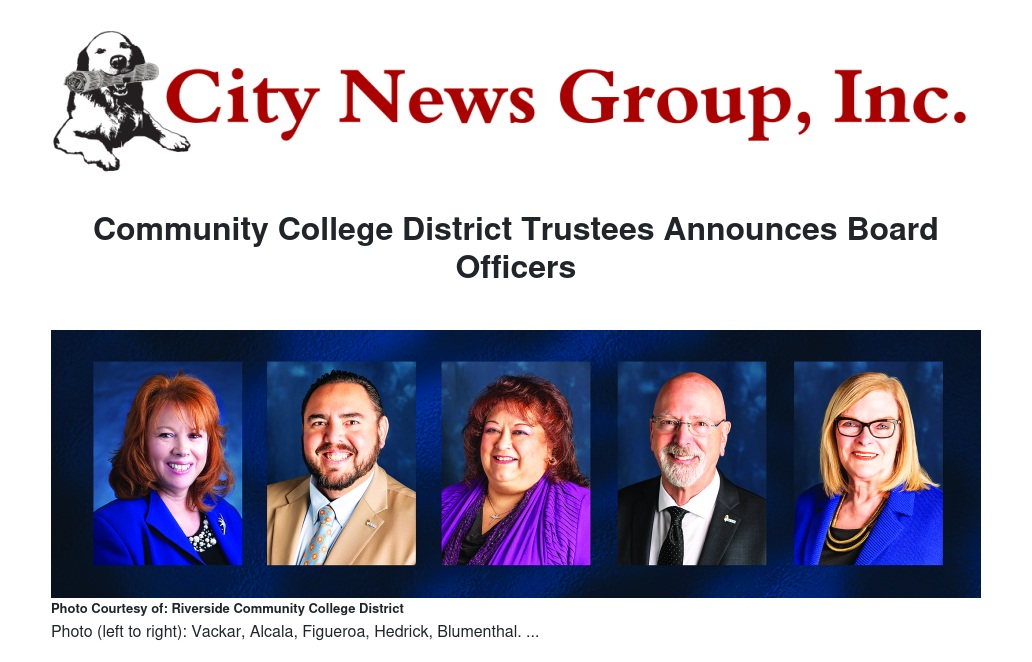 The Riverside Community College District (RCCD) Board of Trustees announced its officers for the upcoming year.