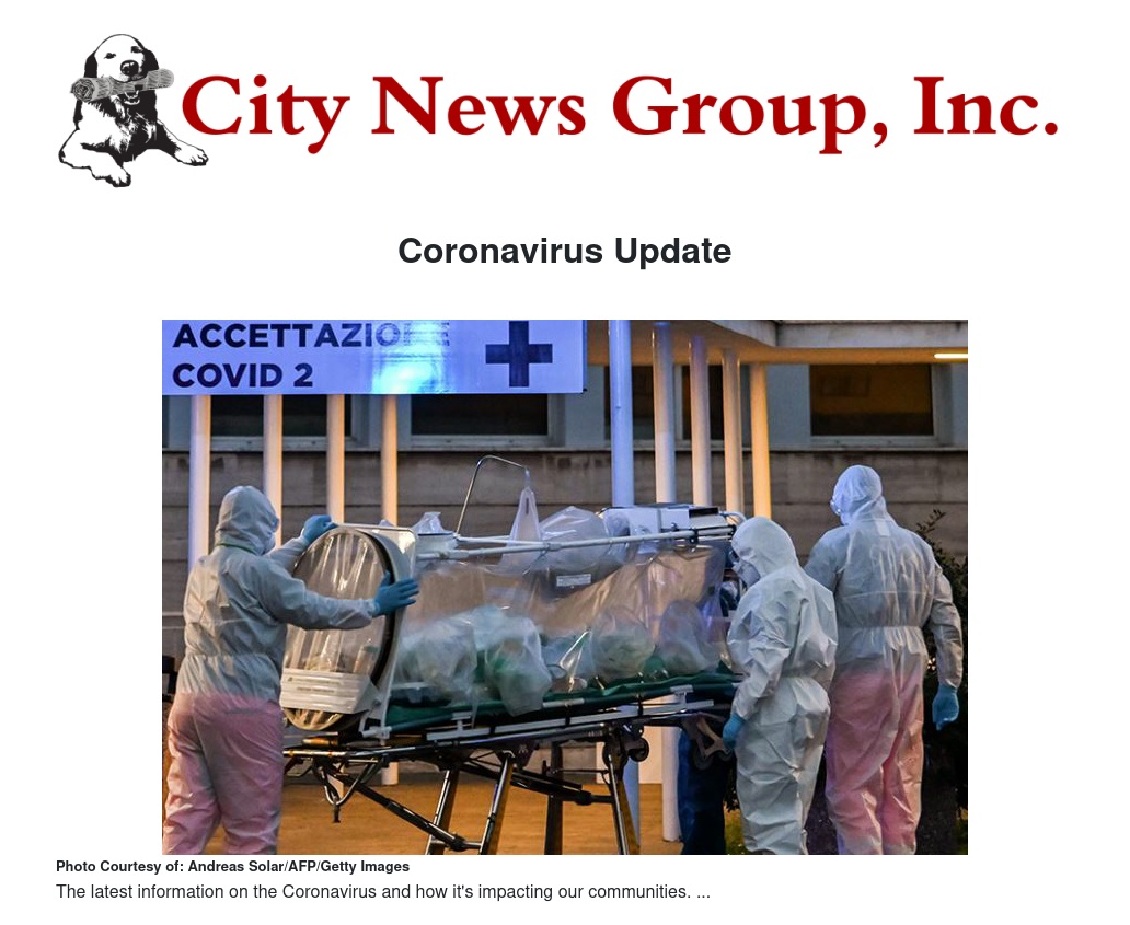 We will continue to provide our local communities with updated information on the Coronavirus and the impact it is having on our cities. All of the information about the Coronavirus within your county and city will be provided on the City News Group website: Citynewsgroup.com.