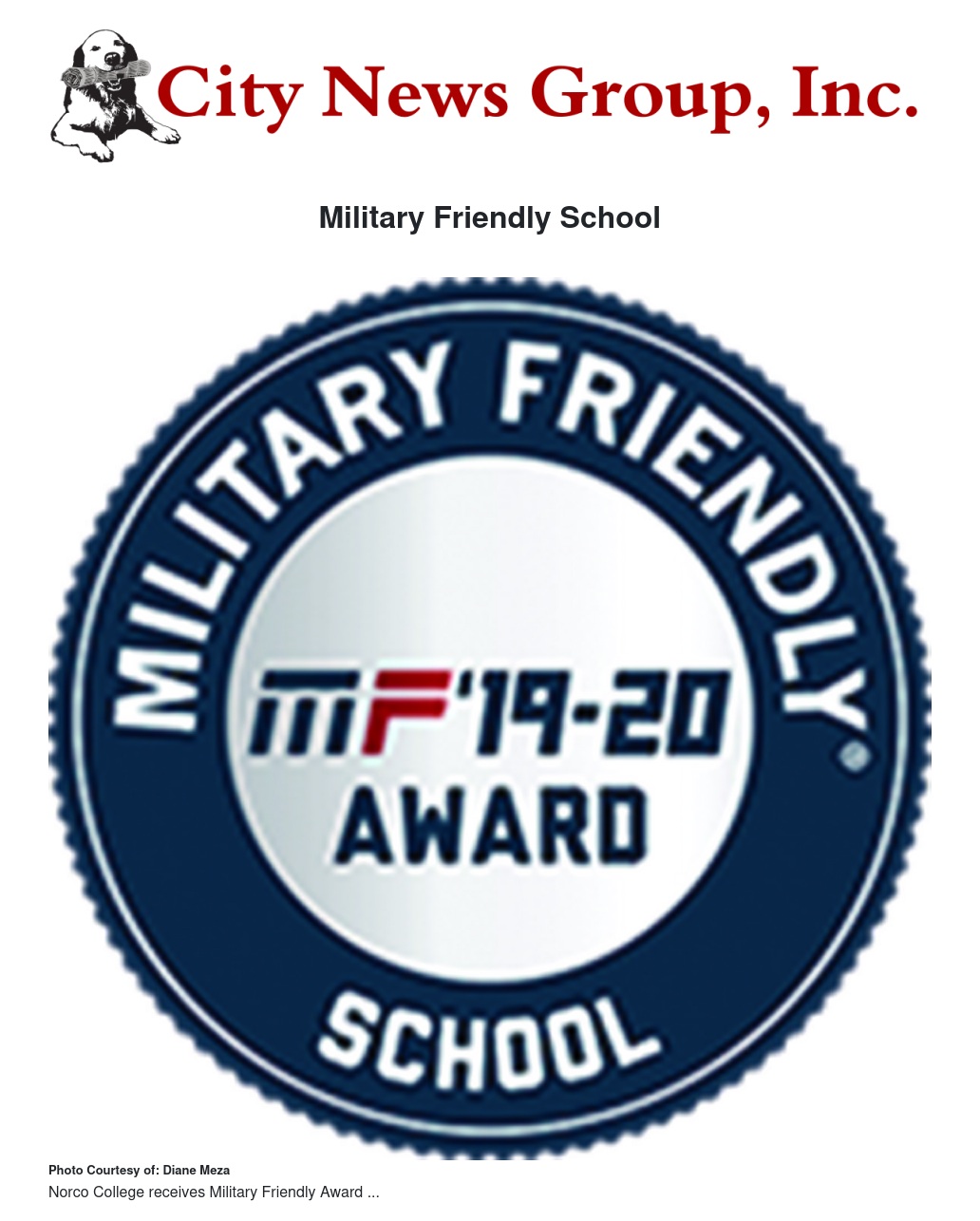 For the second time, Norco College was selected as a designated Military Friendly® school for 2019-2020.