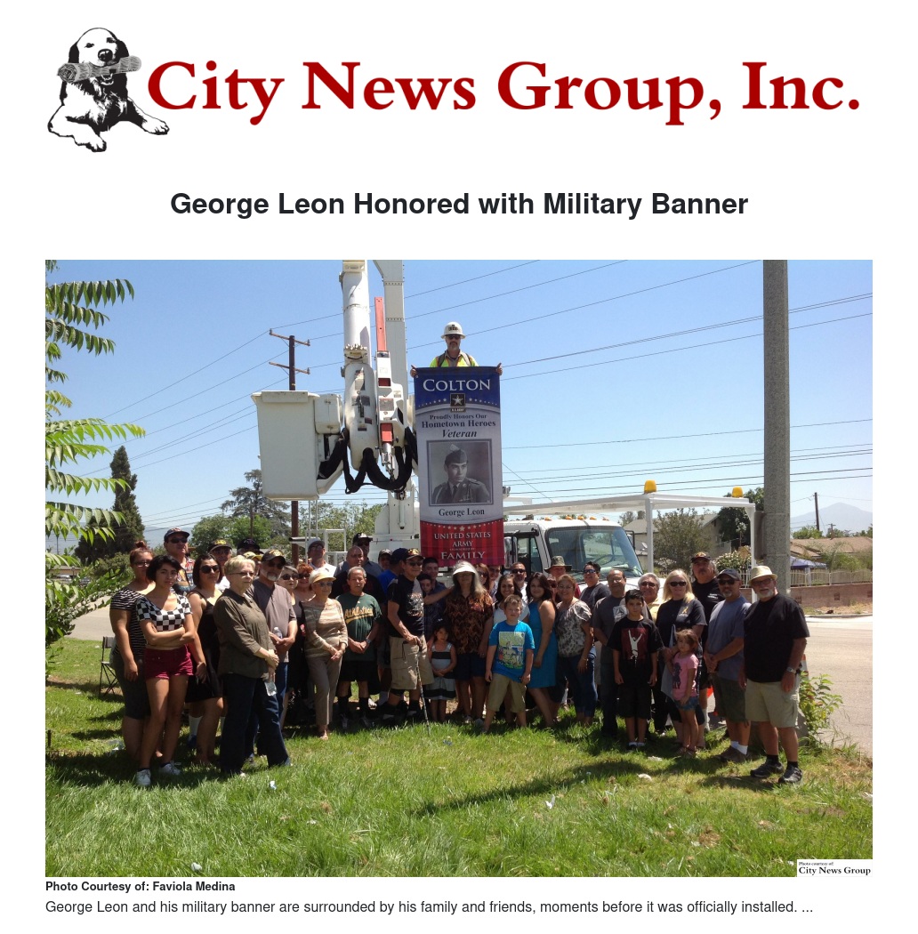 Local George Leon was honored this summer, on June 17, as his very own military banner was officially installed to be shown throughout the Colton community.