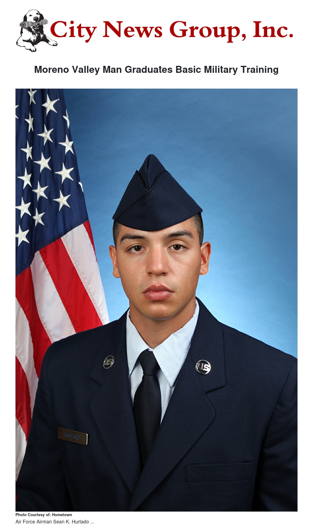 With family in Moreno Valley, 2012 Val Verde High School grad and Air Force Airman Sean K. Hurtado recently graduated from basic military training at Joint Base San Antonio-Lackland in San Antonio, Texas.