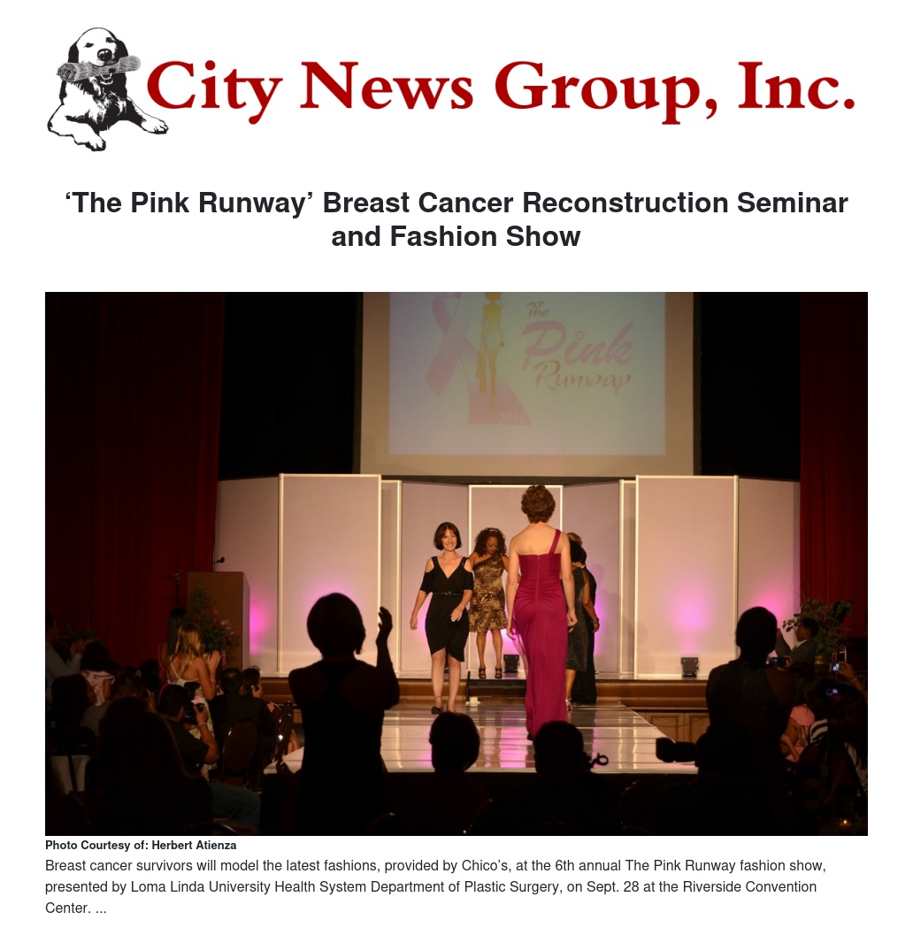 Breast cancer survivors will show current styles and fashions, while specialists will present the latest medical information and advances, as Loma Linda University Health System Department of Plastic Surgery presents the 6th annual “The Pink Runway” Breast Cancer Reconstruction Seminar and Fashion Show on Sunday, Sept. 28.